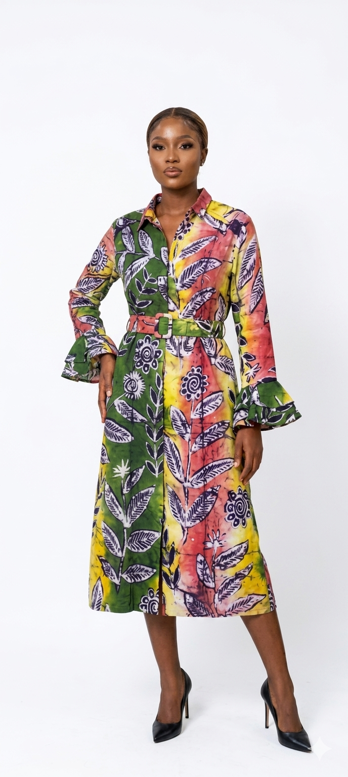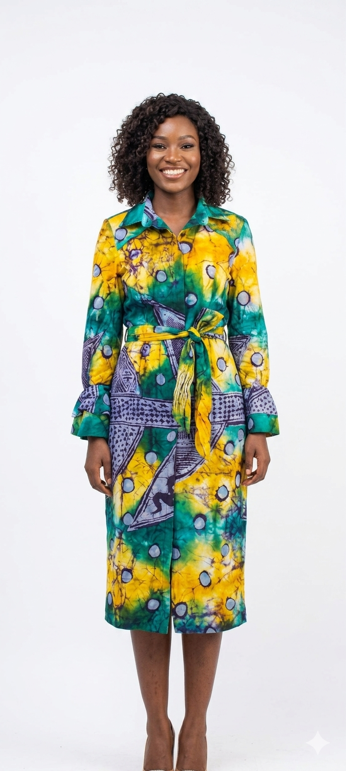 Celebrate heritage through your everyday wardrobe with this vibrant midi shirt-dress.