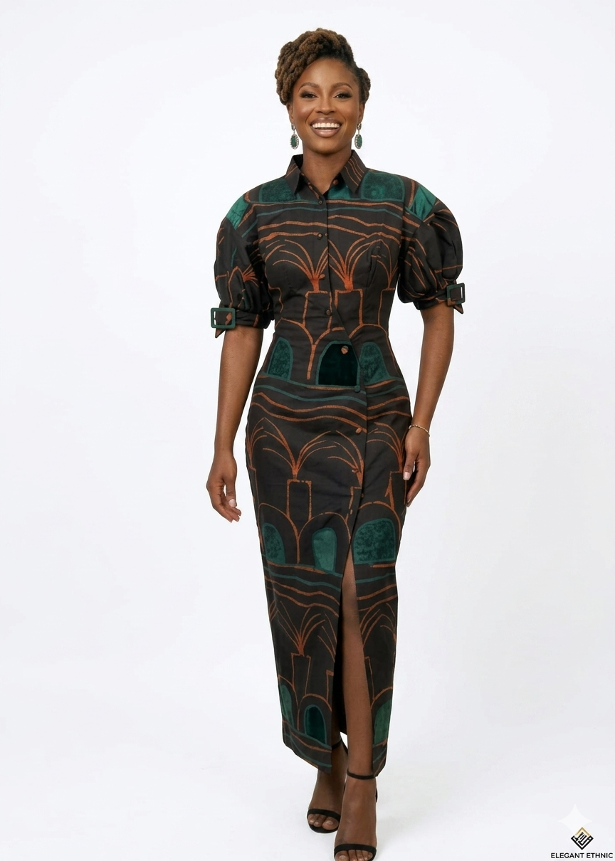 Turn heads effortlessly in this bold and stylish shirt dress. Designed with striking statement details for a truly standout look. The puff sleeves with buckle accents and the front slit add a modern, fashion-forward edge, while the tailored fit enhances beautifully.